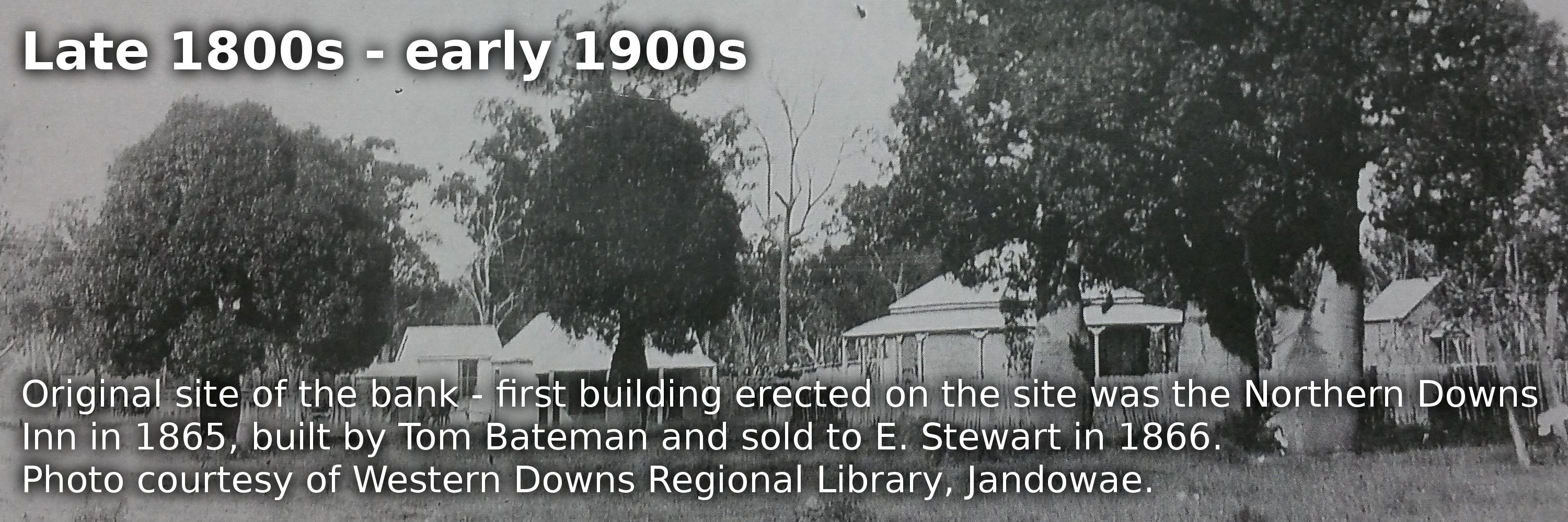 The Queensland National Bank Limited was the second bank to open in Jondowaie (now Jandowae) in the Darling Downs district of Queensland. The block was purchased in late 1913 at which time the QNB was trading from one of the rooms on the verandah of the Club Hotel which also still stands today. The building was completed by builder Tim Tovell and the branch opened for business on the 24th of April 1914. The manager’s residence which forms part of the building was completed in 1915.