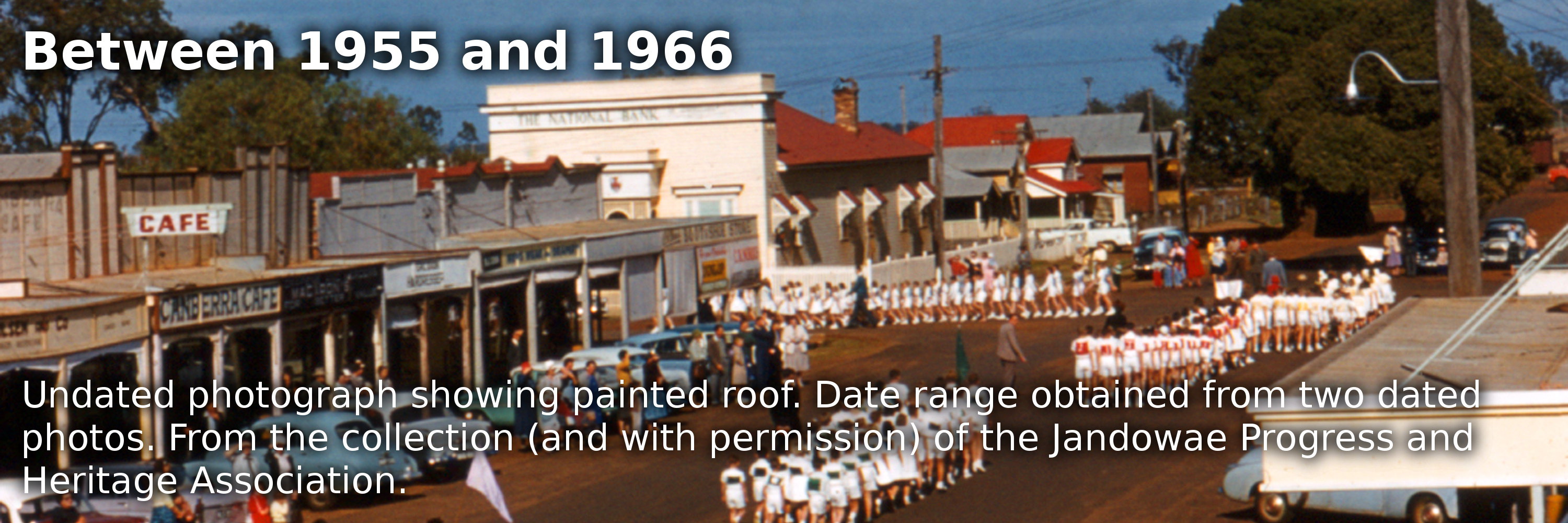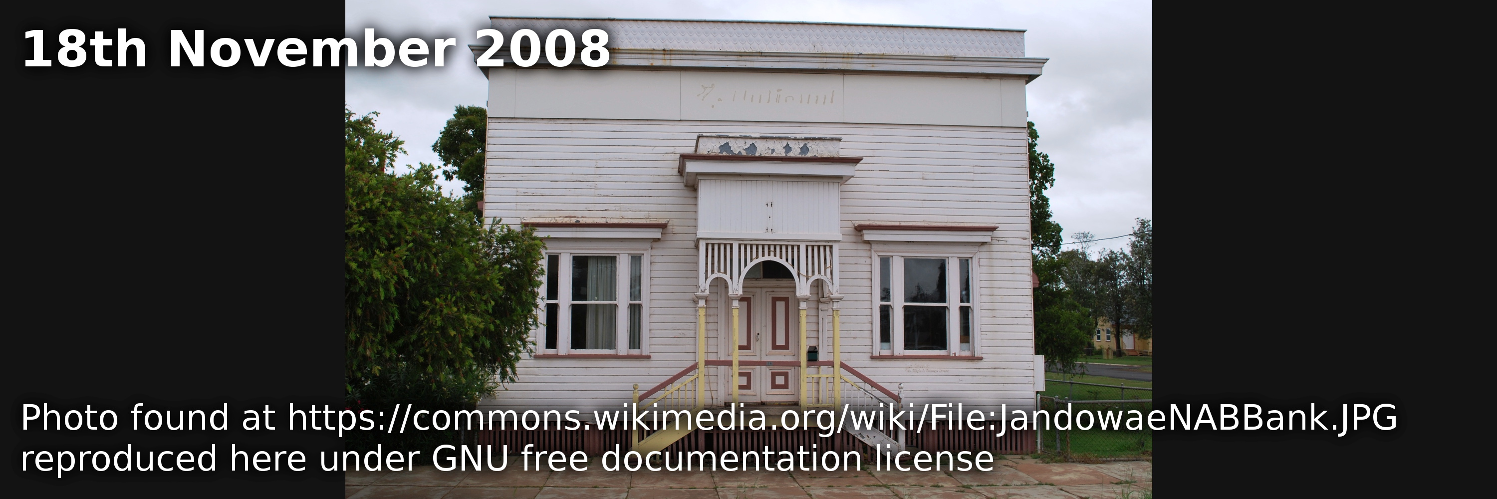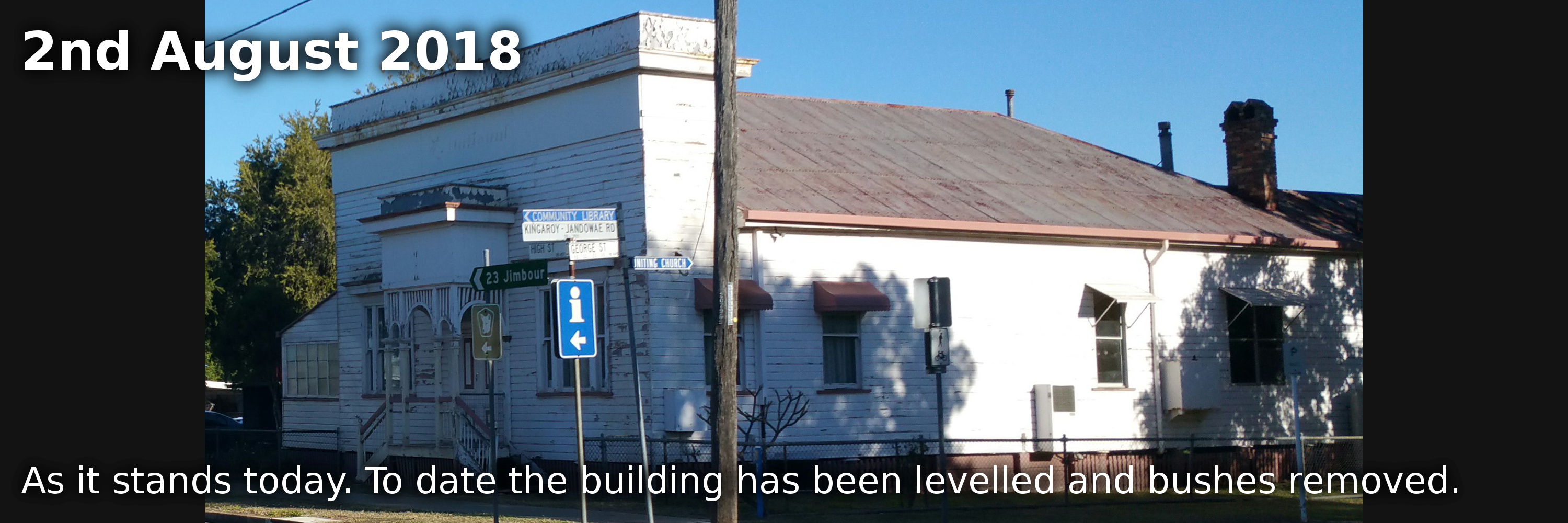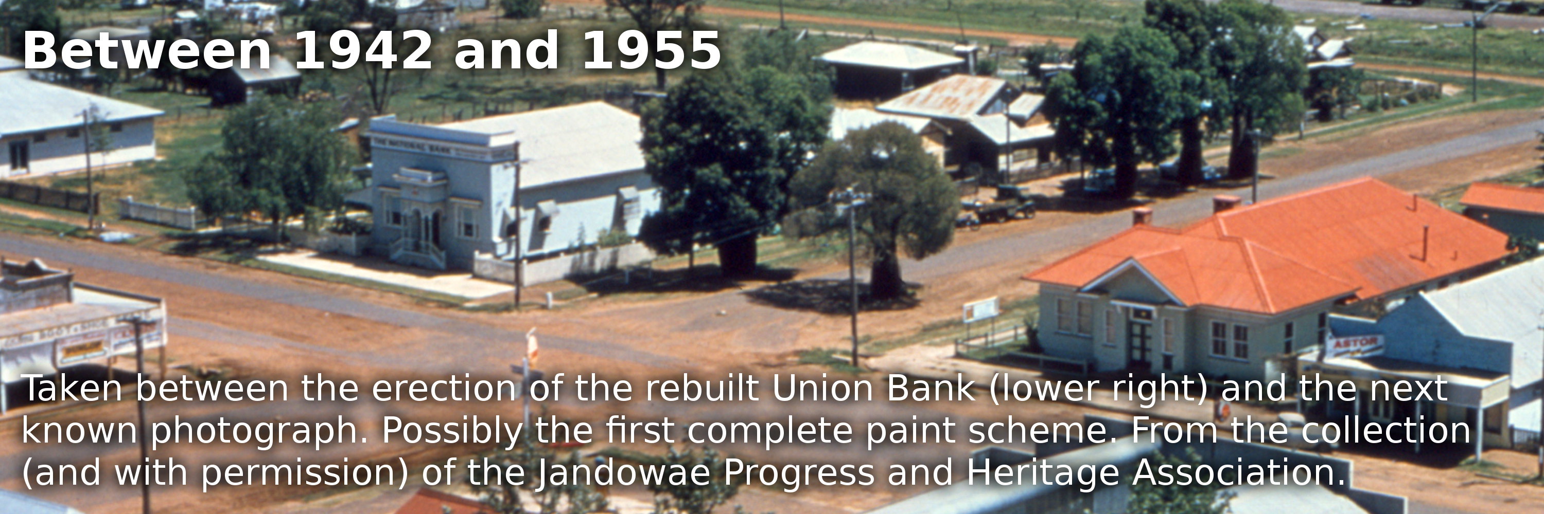 In 1948 the Queensland National Bank Limited merged with the National Bank of Australasia Limited. Following another merger with the Commercial Banking Company of Sydney in 1981 it became renamed the National Australia Bank and remained such until the branch’s closure in late 1996 at which time it became a private residence.